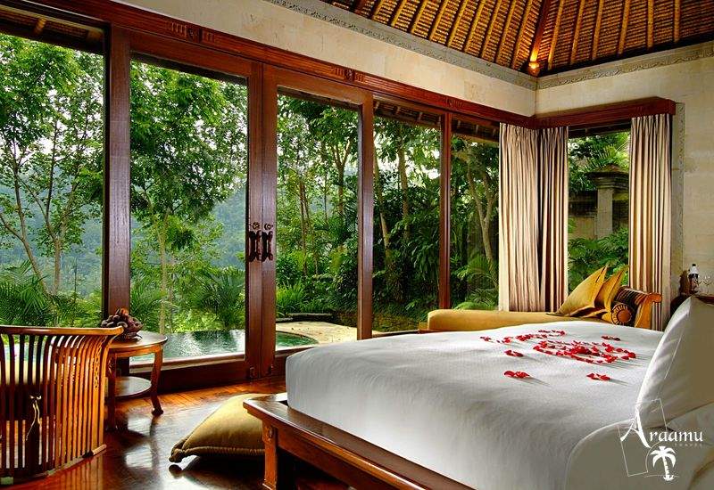 Deluxe Pool Villa (kb. 300nm): fényűző hatást keltő, igényesen berendezett, alábbi felszereltséggel rendelkezik: kád/zuhany/mosdó, hajszárító, klíma, műholdas TV, telefon, minibár, kávé/teafőző, széf. Továbbá egy külön nappali, kert és medence, terasz valamint egyedi kilátás az Ayung folyóra.