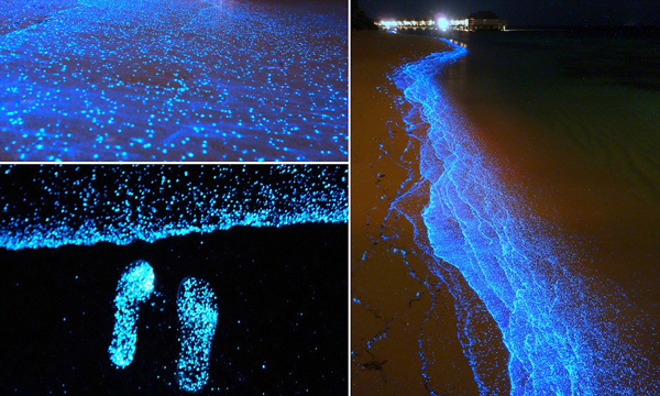 a tengerpart kéken világít. Ezt a ritka jelenséget biolumineszcenciának hívják.