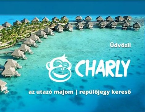 Ne töltsön órákat a repülőjegy kereséssel, Charly az utazó majom megteszi Ön helyett! Csupán néhány kattintás és a világ szinte összes országa, valamint több mint 400 légitársaság járatai érhetőek el on-line a repülőjegy keresőben. INDULÁSI AKCIÓ: A CHARLY.HU kupon kód használatával minden jegyből -3.000.-Ft / fő kedvezményt ad a rendszer! www.charly.hu