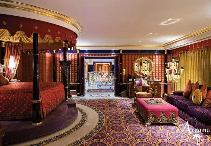 A 202 luxusberendezésű és nagyon tágas lakosztály 21 duplaemeleten található. A lakosztályok alsó emeletén helyezkedik el a nappali és az étkező a bárral. Lépcsőn jut el a vendég a hálóba, az öltözőszobába és a fürdőszobába, ahol zuhany, külön wc, haszárító, fürdőköntös és jakuzzi-kád, valamint a Hermés nagyértékű kozmetikumai alkotják a berendezést, felszerelést. A felszereltséghez tartozik továbbá: két tv (plazmaképernyős) videóval és DVD-lejátszóval, laptoppal, nyomtatóval és térítésmentes internetcsatlakozással, minibárral (egyes alkoholmentes italok az árban), szobai széffel, klímával és nagy panorámaablakkal a Jumeirah Beach-re vagy az Arab-tengerre. Egy pincér egész nap az Ön rendelkezésére áll.