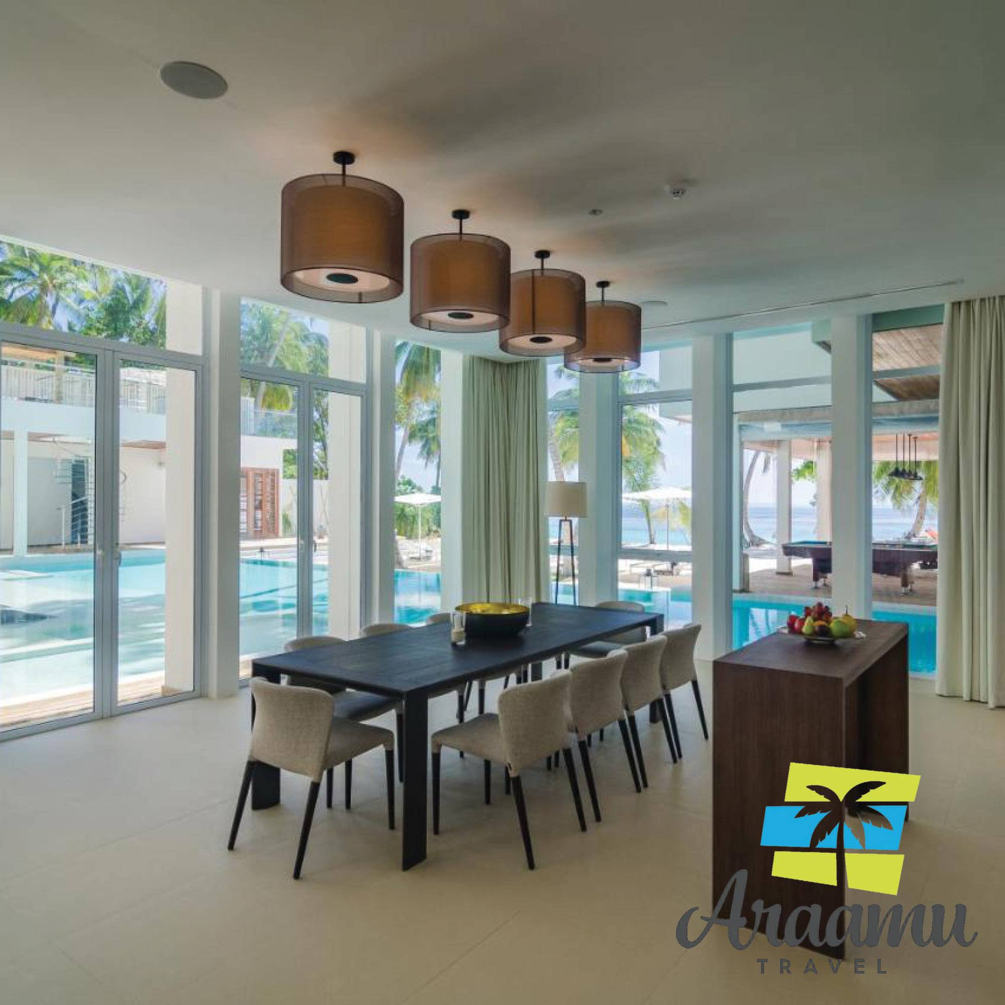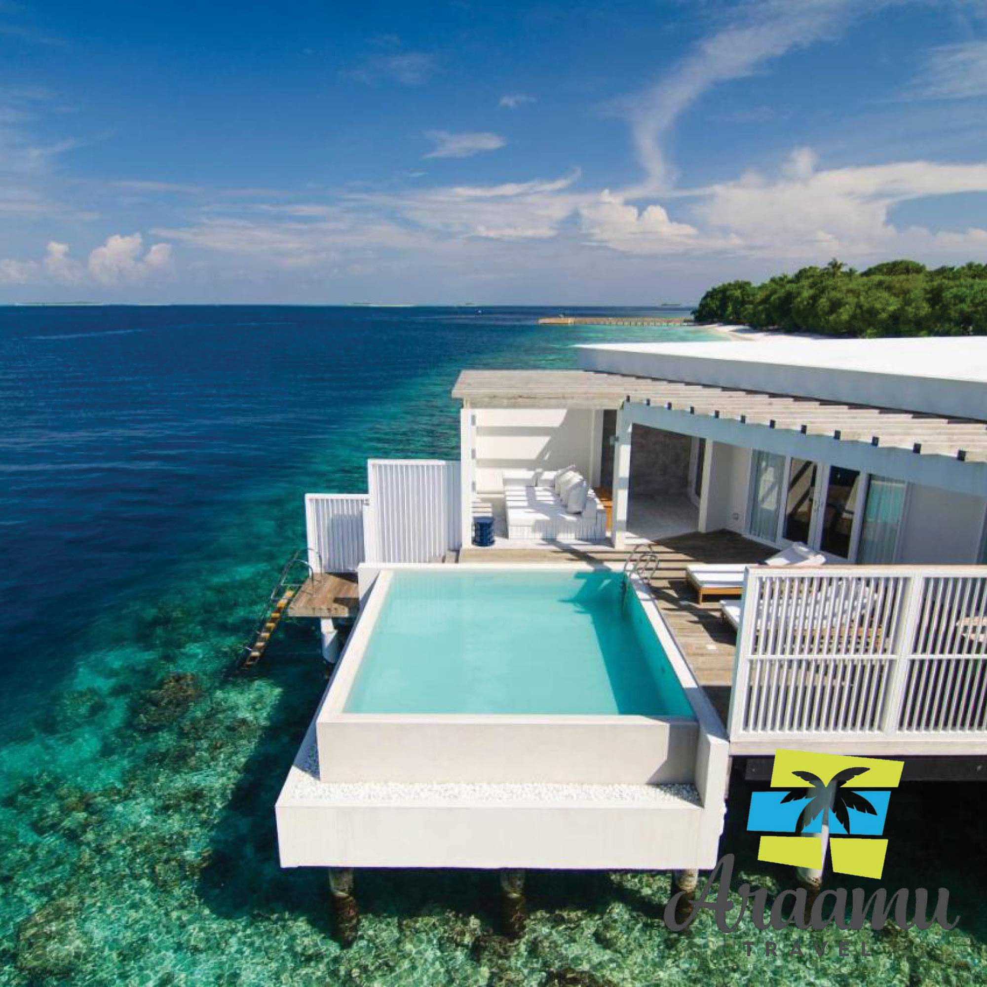 Ocean Lagoon House: cölöpökre épült bungalók, 13 db 230 nm, terasz 30 nm, felszereltségben megegyezik a fenti szobatípussal, a nappali és a hálószoba egy légterű, óceánra néző fürdőszoba.