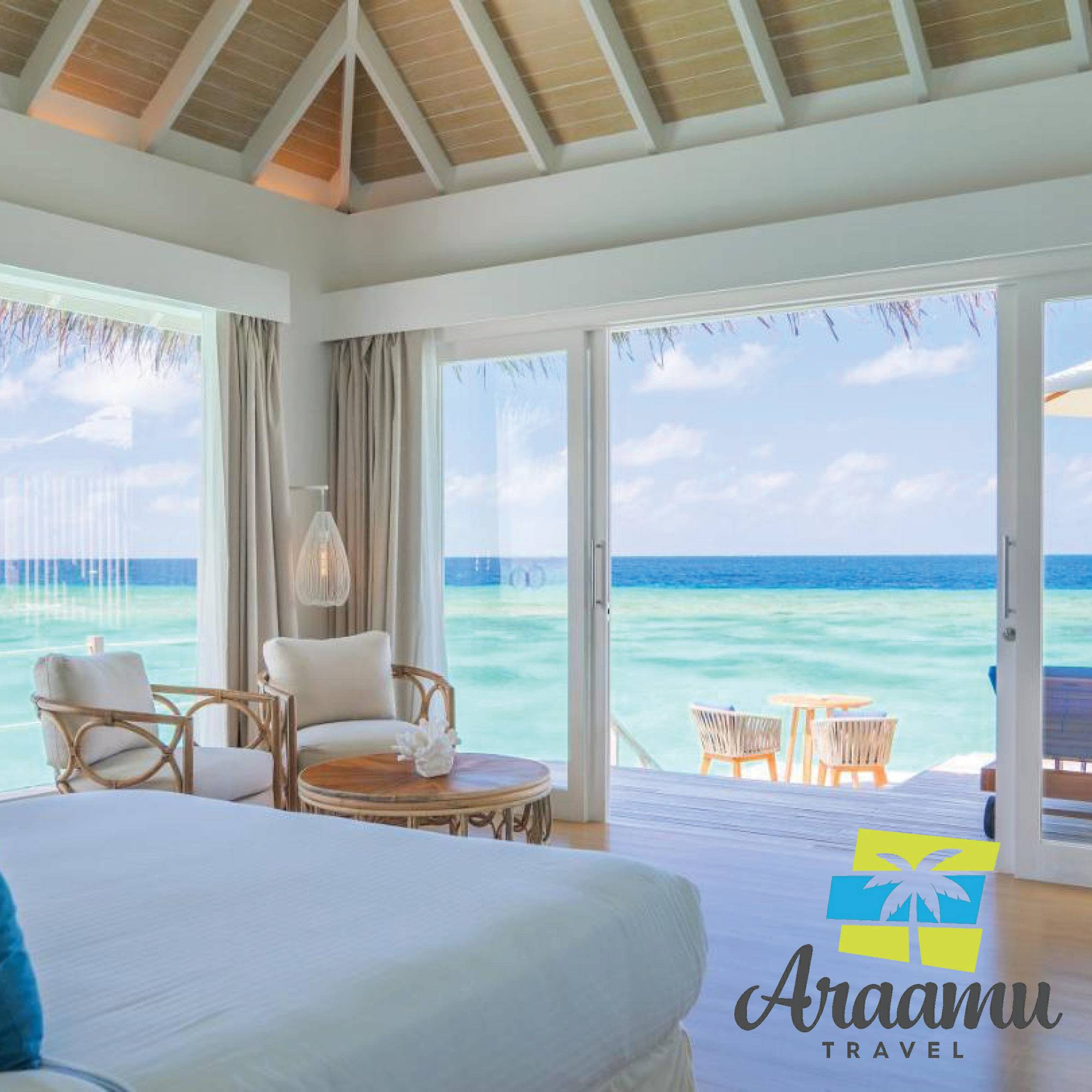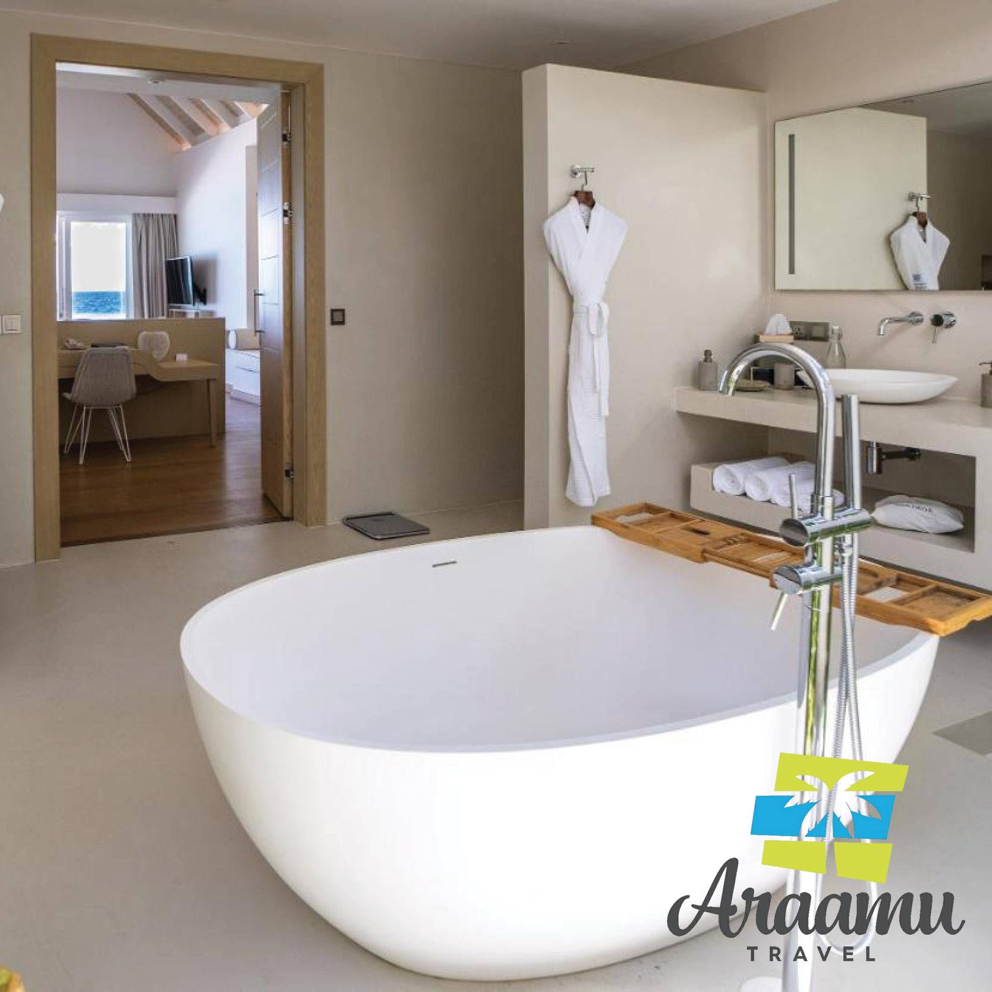 Water Villa Sunset (33db): kb. 105 nm, a víz felett található bungalow, napozó terasszal és közvetlen lejárással a lagúnába.