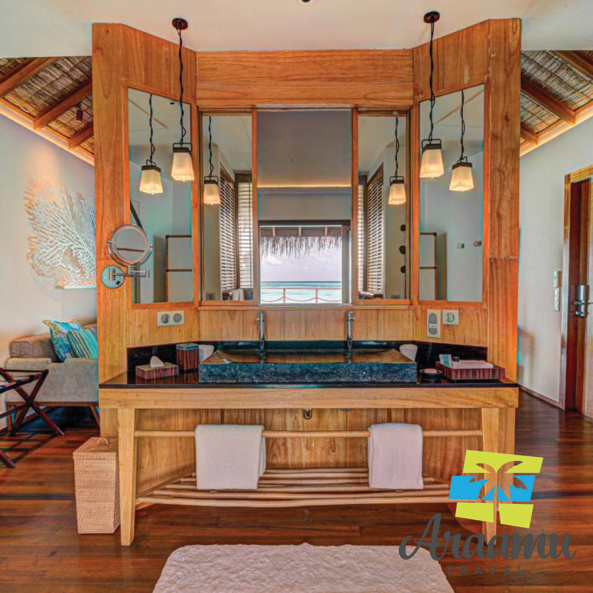 Water Villa (56 db): 61-70 nm, a lagúna fölött lévő villák, ülősarok, fürdőszoba, fürdőköntös, légkondicionáló, ventillátor, minibár, széf, TV, kávé/teafőző, terasz.