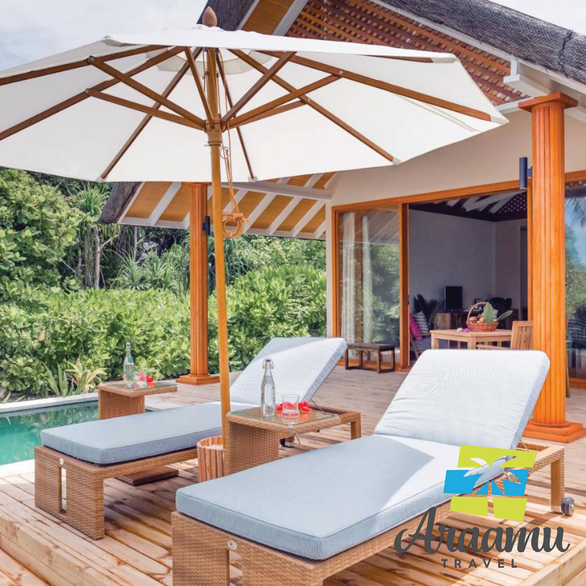 72db önállóan álló Beach Villája, melyből 20-hoz tartozik medence is, valamint 35 víz feletti bungalow-ja van.