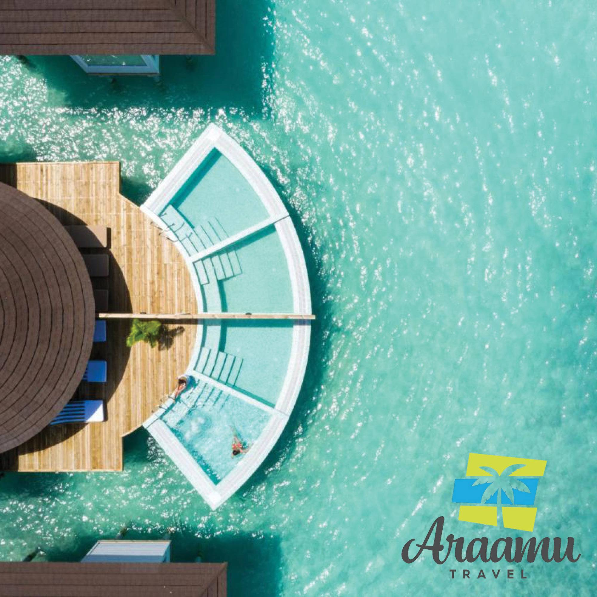 Jacuzzi Water Villa: kb. 81 nm (kategória*****) (32), a keleti oldalon, cölöpökre épülve a lagúnában. A Beach Villához hasonló, zárt fürdőszobával, plusz külön kinti zuhany nélkül, napozórészes fa terasszal, plusz jakuzzival és közvetlen tengeri lejáróval.