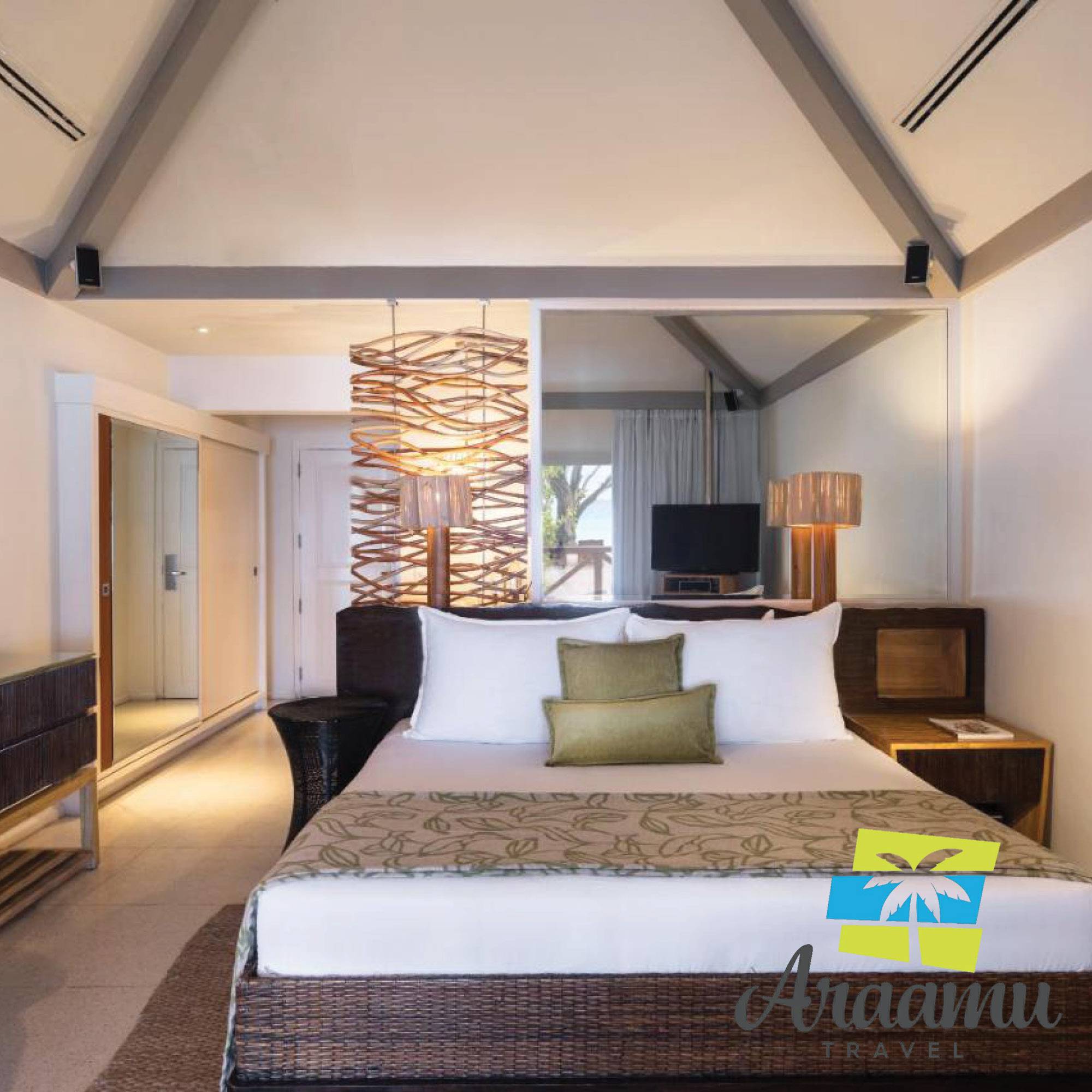 Beach Villa: kb. 58 nm (ebből a kinti rész kb. 13 nm) (12), különálló bungalók minden esetben két lakésszel, közvetlenül a tengerparton, modern, komfortos berendezéssel, ülő alkalmatosságokkal, fürdővel káddal/WC-vel, kabinos zuhannyal és plusz kinti zuhannyal. Továbbá: hajszárító, fürdőköntös, tv (lapos képernyős), DVD-lejátszó, iPod-állomás, telefon, WLAN internet hozzáférés térítés ellenében, klíma, mennyezeti ventilátor, minibár, kávé/teafőző, szobai széf, fa veranda nyugággyal és függőággyal. Tengerre néző panoráma.