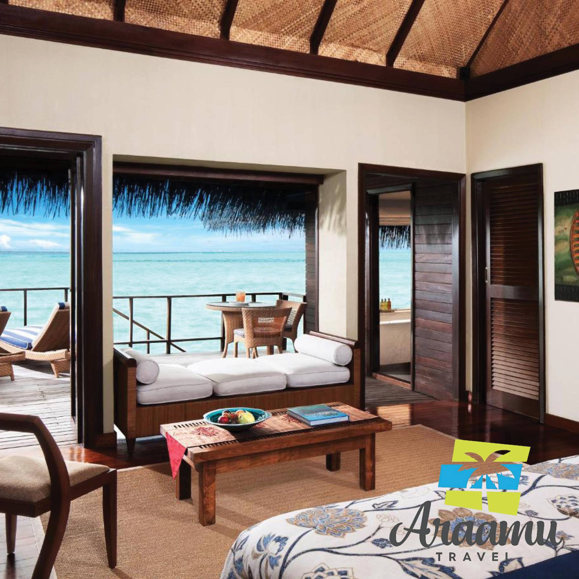 Beach Villa Suite medencével (2) kb. 365 nm (beleértve a kinti területet is): két szinten található, közvetlen partkapcsolatos. Két hálószoba kapott itt helyet fürdőszobával és erkéllyel, külön nappali terasszal, nyugágyak, ernyők és privát medence.
