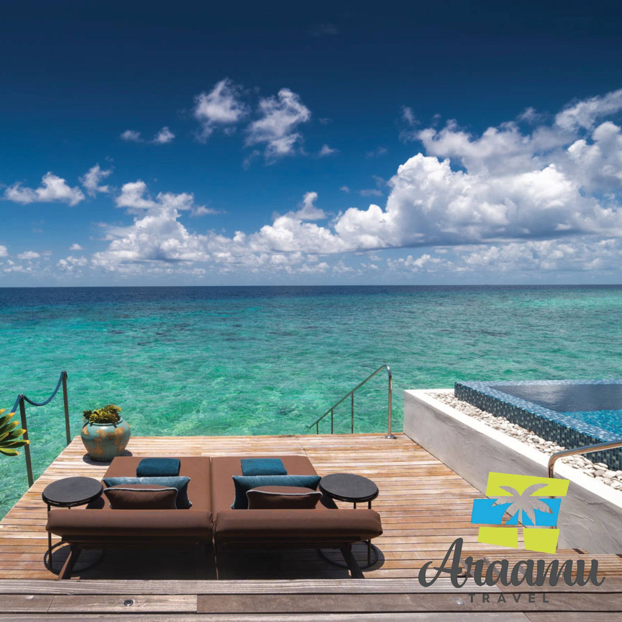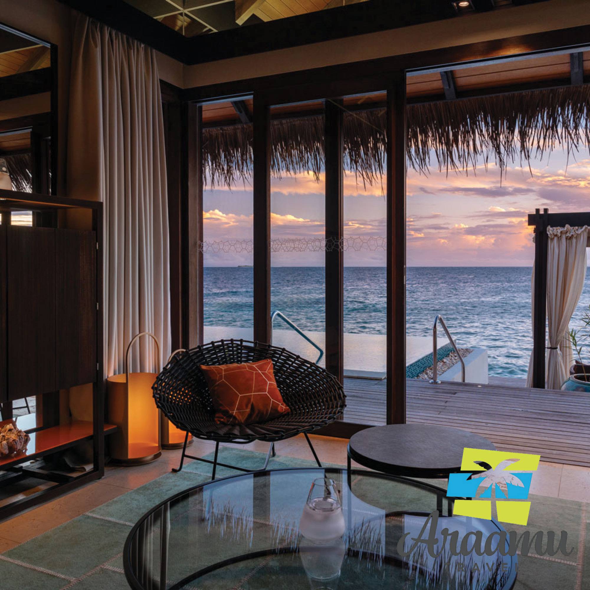 Sunrise Water Pool Villa: 8 db, 232 nm-es (ebből 105 nm terasz, 33 nm medence) víz fölé épült bungaló a sziget napfelkelte felöli oldalán.