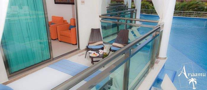 A Luxury Juniorsuite Swim up plusz közvetlen medencekapcsolattal is rendelkezik.