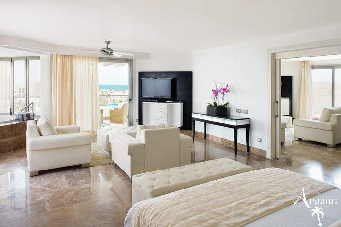 A tengerre néző Suite hatalmas teraszos, ahol merülő medence, napozóágyak és pihenőágy is helyet kapott, nem is beszélve a remek kilátásról az óceánra.