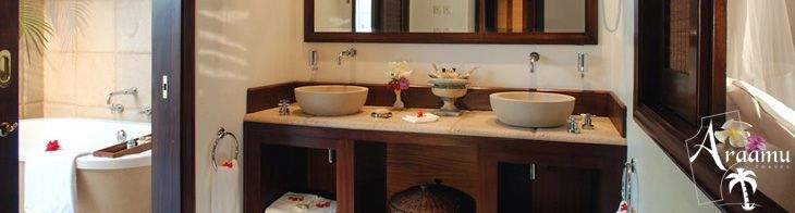 Beach Villa: kb. 440 nm (ebből kinti rész 64 nm) (23), a Beach Retreat-hoz hasonló, de sokkal nagyobb, nagy hálószobával, nagy kerttel és nagyobb feszített