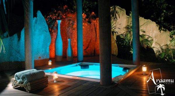 Az új építésű „Eden Rock” csodás panorámájával az Indiai-óceánra, La Digue egyetlen spa-részlege. Térítés ellenében: jakuzzi, hammam, masszázsok és